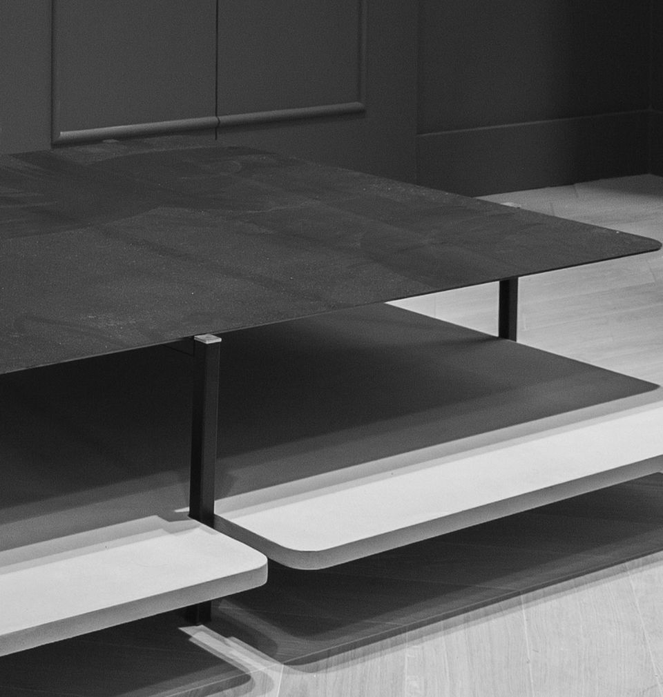 TVB is a generously sized coffee table with two support surfaces. The aim was to balance the relationships between materials, craftsmanship, and structure, emphasizing the material contrasts. A real platform for conversations or solitary idleness.
